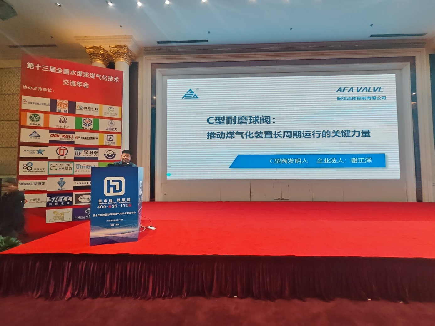 会议期间,AFA公司董事长谢正泽先生亲自登台,发表了题为《C型球阀:推动煤气化装置长周期运行的关键力量》主题演讲。详细阐述了C型耐磨球阀的核心技术特点及其在煤气化装置中的应用价值,赢得了与会者的广泛认同与热烈反响。